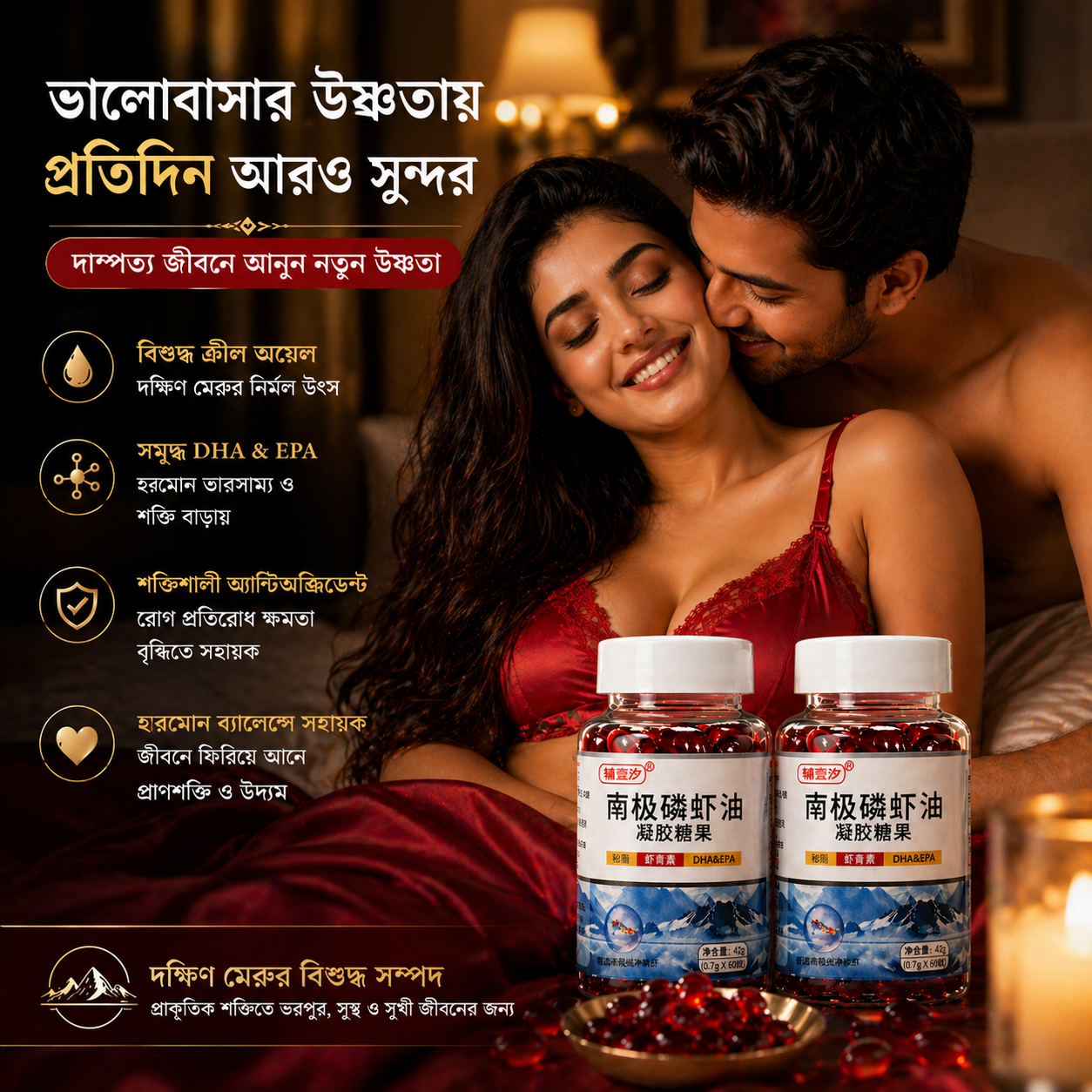 Antarctic Fish Krill Oil — প্রতি বোতলে ৬০টি প্রিমিয়াম সফটজেল ক্যাপসুল, দৈনন্দিন পুষ্টির স্মার্ট সাপোর্ট।
